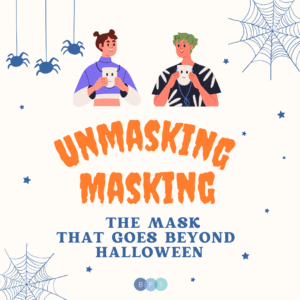 The season of costumes and masks is here! Every Halloween, people gather to transform into someone else, whether it be a superhero, a favorite artist, or a spooky villain, the possibilities are endless. But what if I told you that for some, wearing a mask isn’t just a once-a-year tradition? Some people wear an invisible mask every day of their lives. This is known as “masking,” and for many autistic people, it’s a way to blend into a world that often expects people to act “neurotypical.” Let’s explore what masking really means, why it happens, the toll it takes, and why unmasking is so critical for our neurodivergent folks!